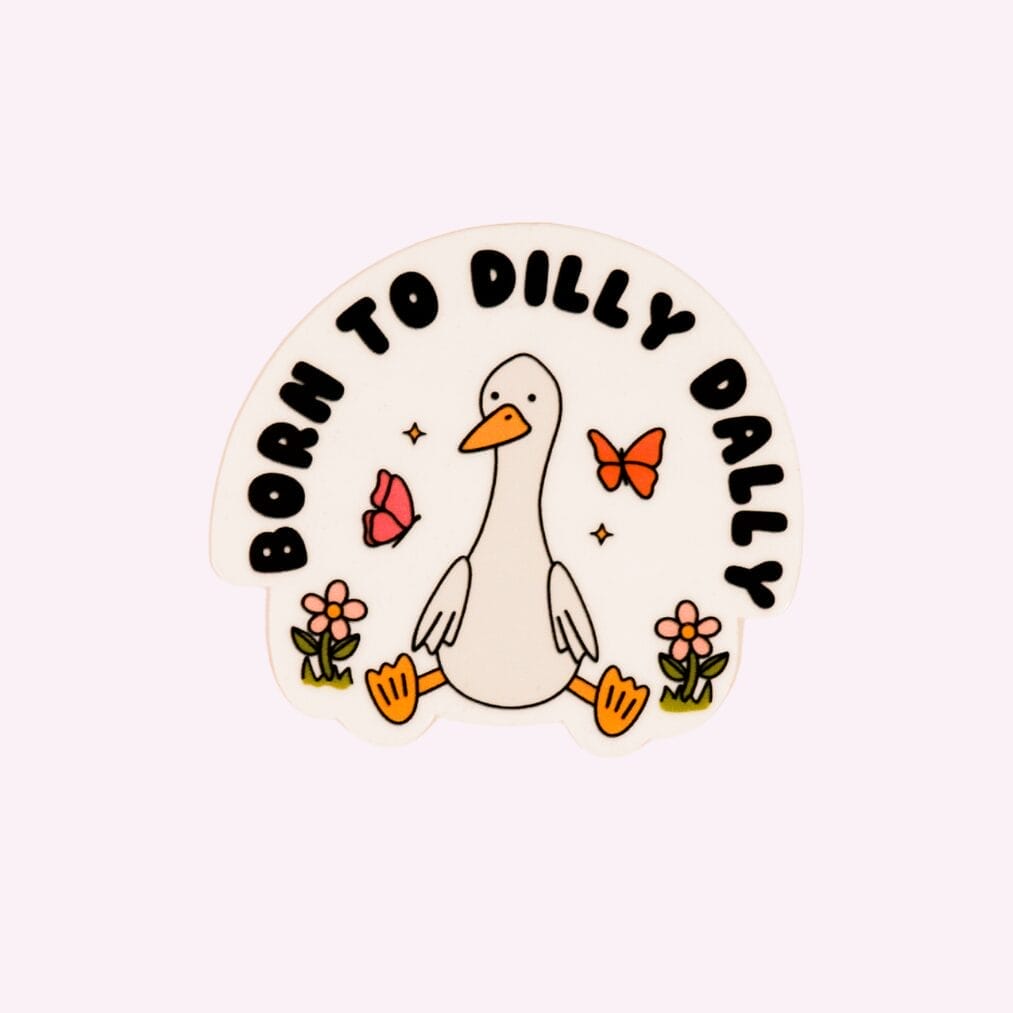Born to dilly dally. This cute goose sticker is a reminder to slow down and enjoy the little moments. A sweet, whimsical touch for your water bottle, laptop, or notebook.