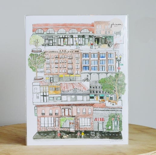 Original watercolor and pen illustration is inspired by the different Neighborhoods in Omaha, Nebraska.