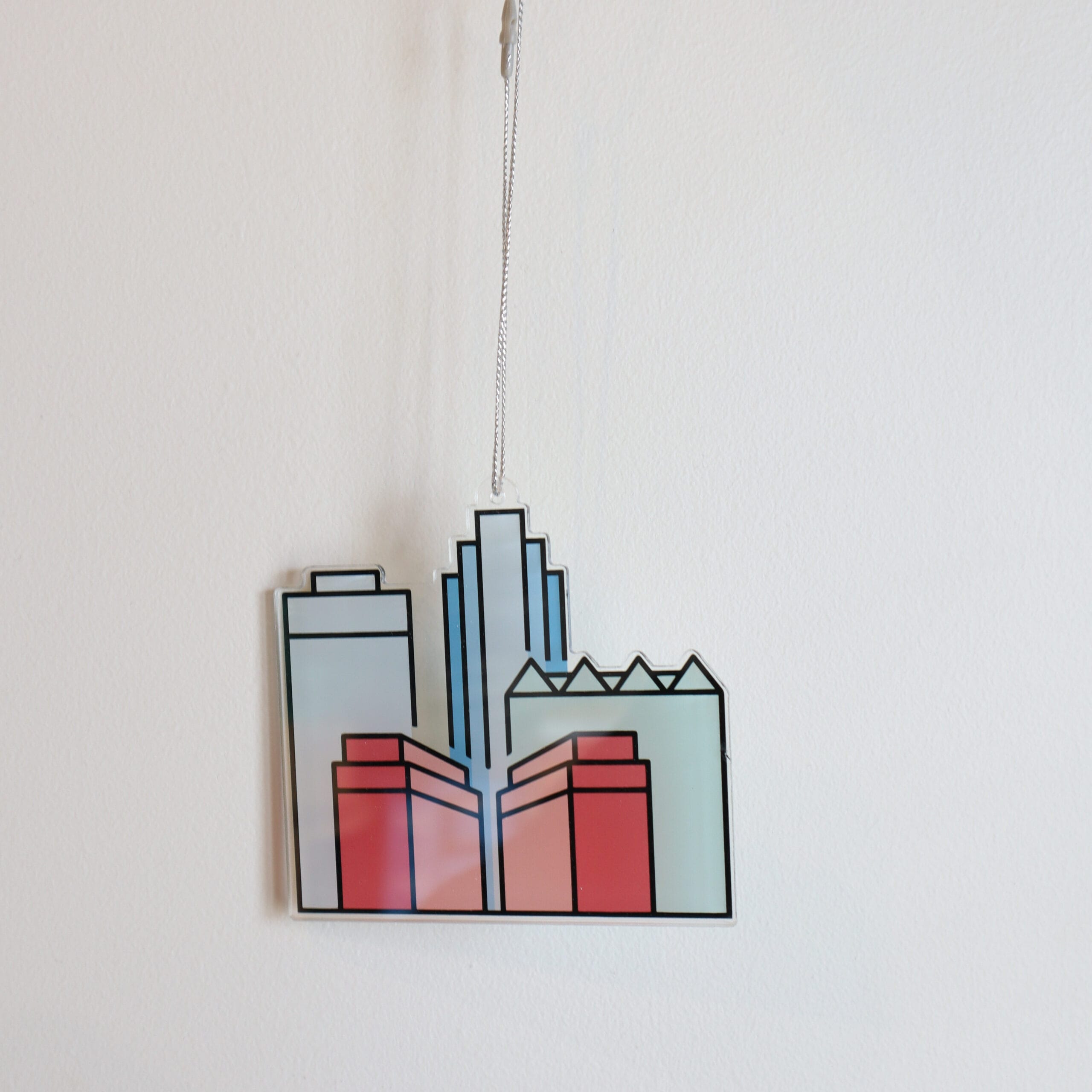 This design was created by Made in Omaha's in-house designer. Show your love for Omaha's skyline with this acrylic ornament.