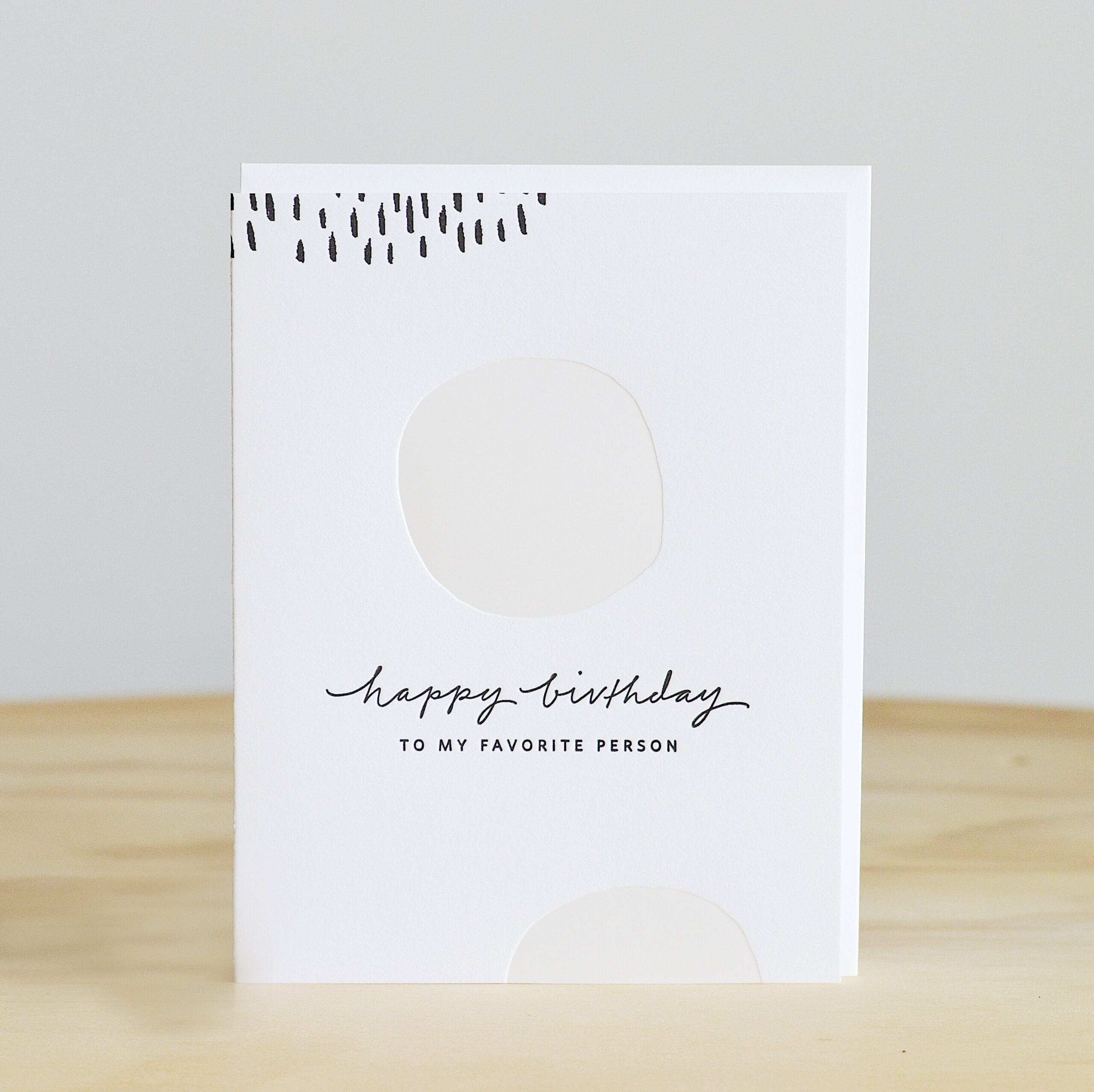 Designed by Ramona & RuthRamona & Ruth is a boutique letterpress stationery studio in Omaha, Nebraska. Every greeting card, notepad, and notebook are locally produced and hand-assembled.Details:Text reads: "Happy Birthday To My Favorite Person"Blank insideLetterpress printedA2 folded 4.25" x 5.5"Matching envelopeClear sleeve