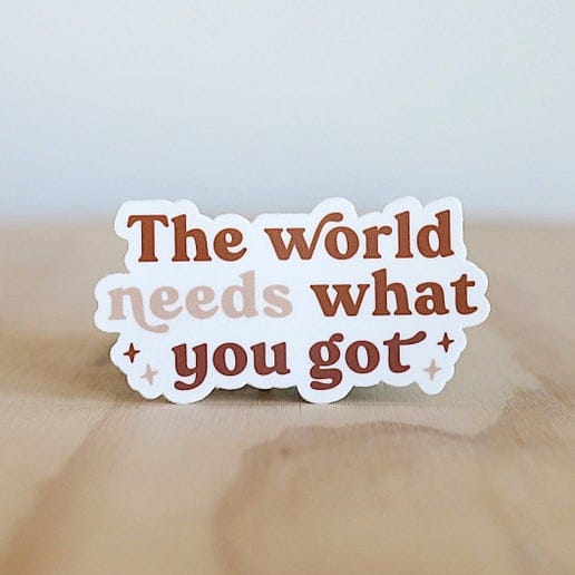 A little boost of encouragement wherever you need it. This positive reminder that the world needs what you got is perfect for your laptop, water bottle, or journal. A small but mighty way to spread good energy every day.